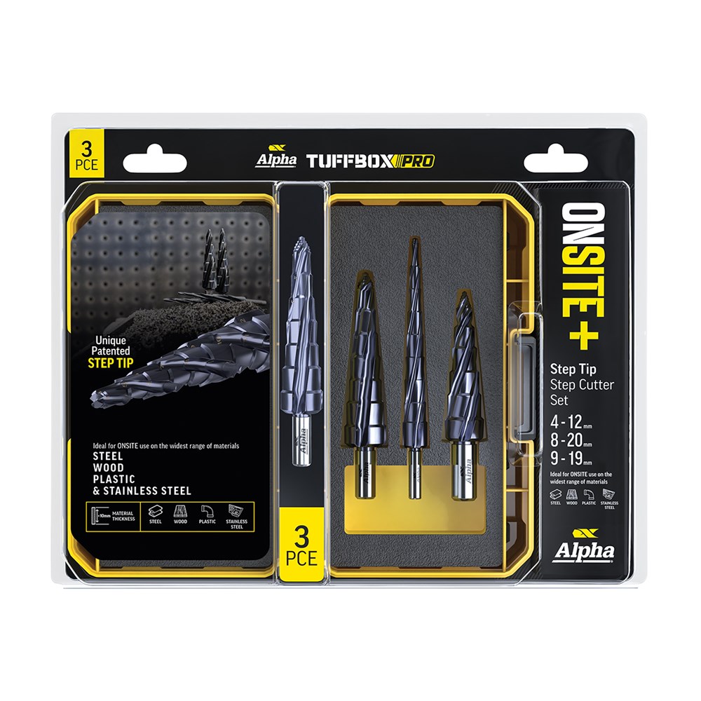 Product Description Description: Professional 3-piece step cutter set designed for precision hole cutting in sheet metal and plastics Supplied in a durable Tuffbox Pro case with secure latch and hinge…