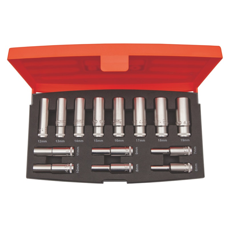 Product Description Features: Bahco quality Drive 3/8” 14 piece set 6 point Deep sockets Included sizes: 6, 7, 8, 9, 10, 11, 12, 13, 14, 15, 16, 17, 18 and 19 mm Plastic case: 280 x 155 x 45 mm Enquir…