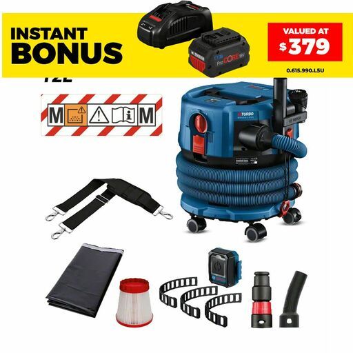 Buy Bosch GAS 18V-12 MC (0.601.9K2.050) 18V Li-ion Cordless 12L Dust Extractor – Skin Only On Sale At Sydney Tools. FREE Shipping Australia Wide When You Spend $99. We Have The Best Brands At The Best Prices Including Milwaukee, Makita, HiKoKi, DeWalt and More! Check Our Redemption Deals Online For The Best Tools & The Best Prices.
