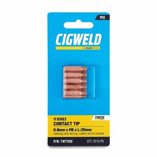 Buy Cigweld TWT1108 10-Pack 0.8mm x M6 x L:25mm 11 Series Contact Tip On Sale At Fix Right Supplies. FREE Shipping Australia Wide When You Spend $99. We Have The Best Brands At The Best Prices Including Milwaukee, Makita, HiKoKi, DeWalt and More! Check Our Redemption Deals Online For The Best Tools & The Best Prices.
