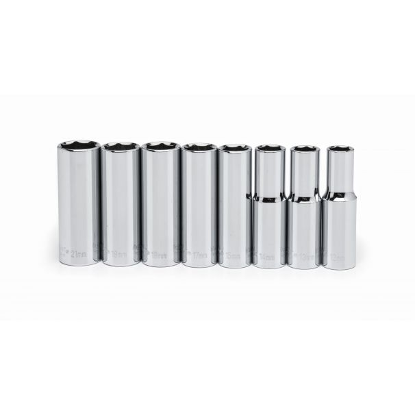 HomeShopAutomotive ToolsSocket SetsCrescent 8 PC, 1/2” Drive 6 PT Socket Set, Deep, Metric