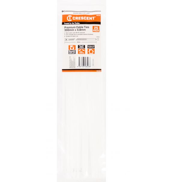 300 X 4.8mm 25 per packHigh quality nylon 66UL approvedExtra strength due to heavier weight of material usedSuitable for indoor useTensile Strength: 22.2kg/50lbs – 83MPa