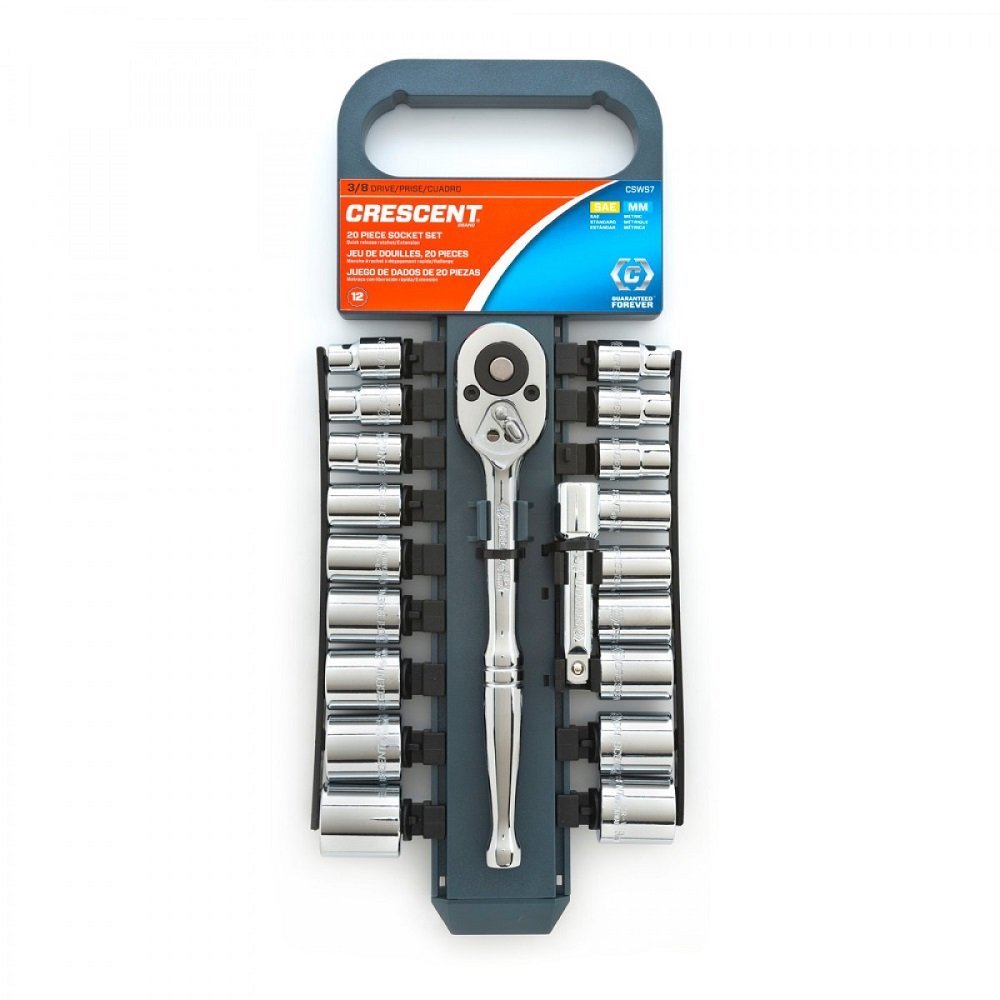 HomeShophandtoolSockets & SetsCrescent CSWS7 20 Piece 3/8″ Drive 12 Point SAE/Metric Socket Wrench Tool Set