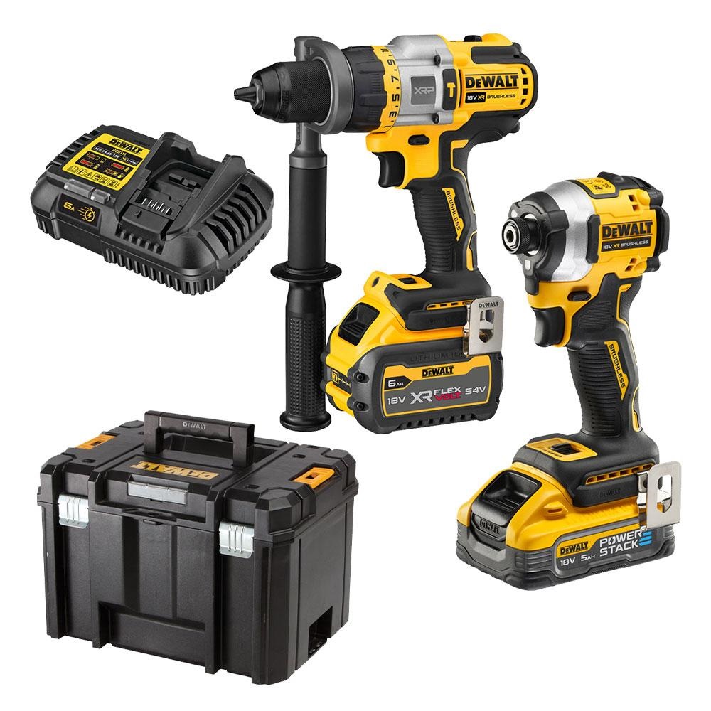 HomeShopCordless ToolsCombo KitsDeWALT DCK2052H1T1-XE 18V 5.0Ah POWERSTACK & 6.0Ah XR Premium Cordless Brushless 2 Piece Hammer Drill & Impact Driver Combo Kit