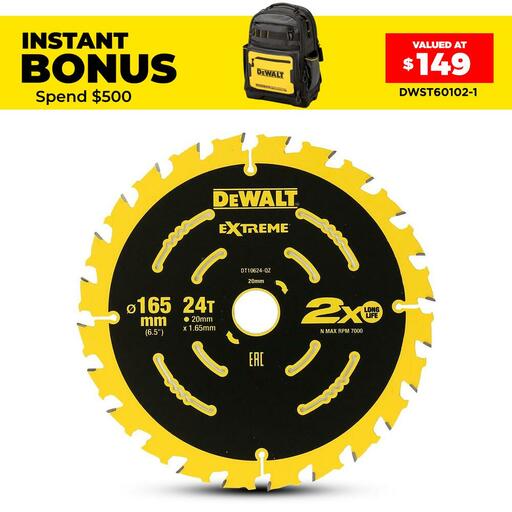 Buy DeWalt DT10624-QZ 165mm (6.5″) 24T Extreme Circular Saw Blade On Sale At Fix Right Supplies. FREE Shipping Australia Wide When You Spend $99. We Have The Best Brands At The Best Prices Including Milwaukee, Makita, HiKoKi, DeWalt and More! Check Our Redemption Deals Online For The Best Tools & The Best Prices.