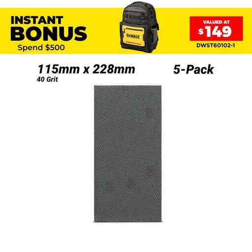 Buy DeWalt DTM8659-QZ 5-Pack 115mm x 228mm 40 Grit Extreme Abrasive Mesh 1/2″ Sheet On Sale At Fix Right Supplies. FREE Shipping Australia Wide When You Spend $99. We Have The Best Brands At The Best Prices Including Milwaukee, Makita, HiKoKi, DeWalt and More! Check Our Redemption Deals Online For The Best Tools & The Best Prices.