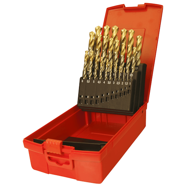Product Description Features: HSS (High Speed Steel) Jobber Set (A002) | DIN 338 | ISO 235 Tin Tipped Made in Brazil 24 Piece 118° Point Angle General Purpose use Sizes: 1 – 10.5mm in 0.5mm increments…