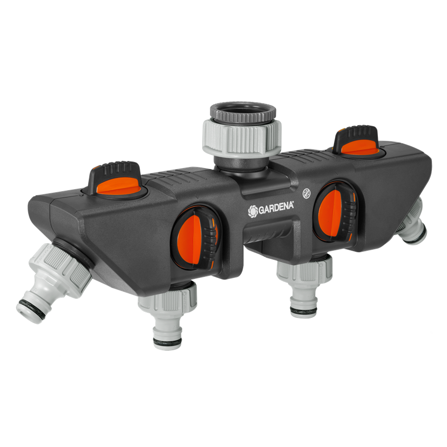 Product Description Description: For operating four watering accessories The GARDENA Four Channel Water Distributor makes it possible to simultaneously connect several accessories to one tap. The water flow can be separately regulated or switched off for each outlet. Two GARDENA Water Computers or Water Timers can be connected to the Four Channel Water Distributor. The Four Channel Water Distributor can be converted to the GARDENA “Profi” Maxi-Flo System with the “Profi” Maxi-Flow System Threaded Tap Connector (Art. No. 2801-20).It is suitable for water taps with 33.3 mm (G 1″) thread and taps with 26.5 mm (G 3/4″) thread and 13mm (1/2″) hose connector Features: 4 devices on one tap With the use of the Four Channel Water Distributor, several devices can be simultaneously connected to one tap. Individually adjustable and can be shut off The water flow can be independently regulated or switched off The Original GARDENA System Thanks to the system products of the Original GARDENA System any watering accessories can be easily and quickly connected to the tap or hose. Everything interconnects from start to finish and stays watertight Specifications: Article No. 8194-20 EAN-Code: 4078500819404 Enquiry Tell A Friend