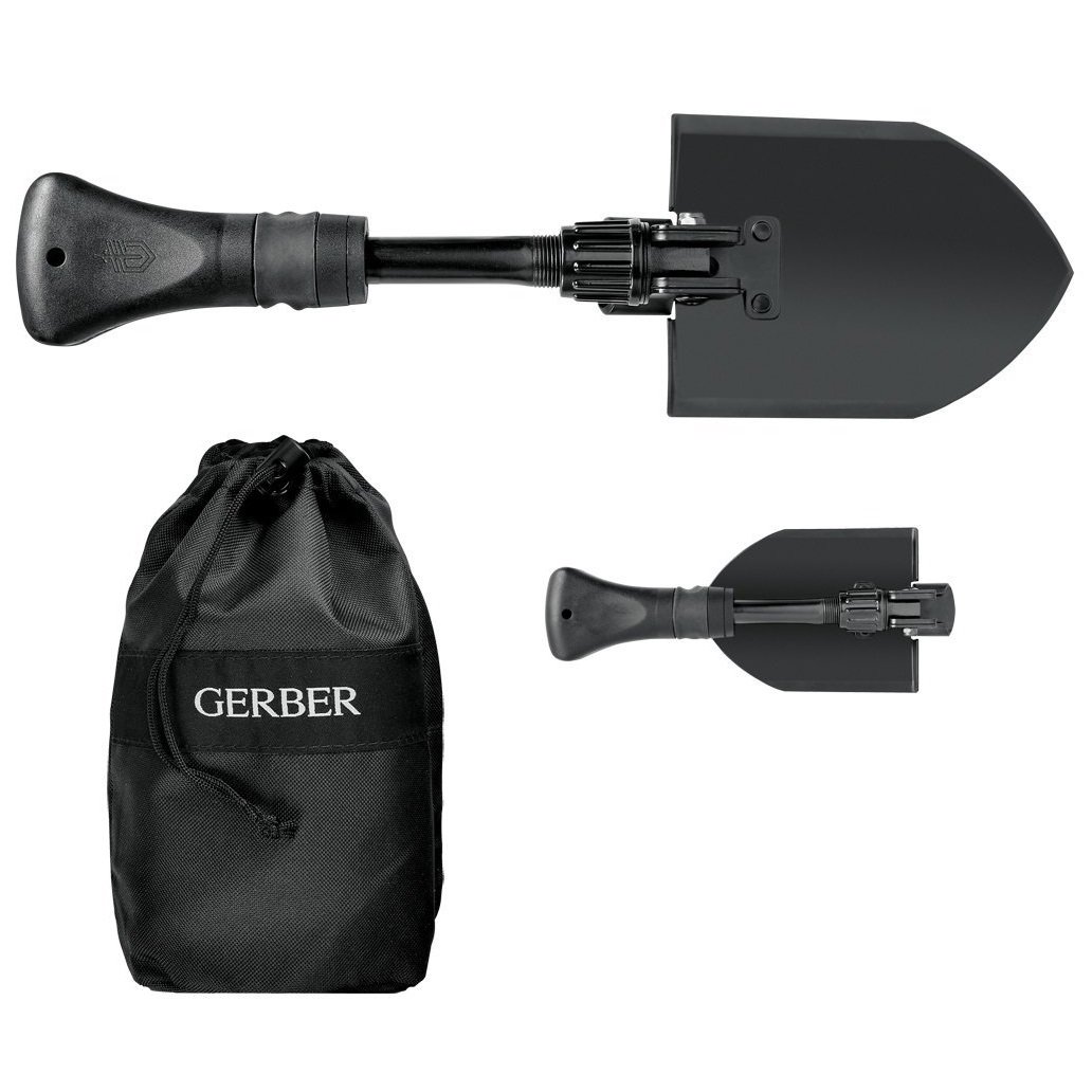 Product Description Description: The Gorge Folding Shovel features a fast and smooth push-button collapsible handle and a glass-filled nylon shaft with rubberized overgrip. The spade folds back, revea…