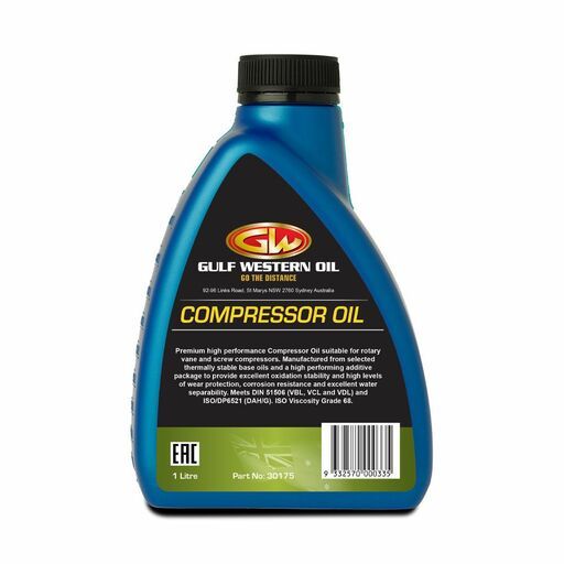 Buy Gulf Western 30175 1L VG46/68/100 Compressor Oil On Sale At Fix Right Supplies. FREE Shipping Australia Wide When You Spend $99. We Have The Best Brands At The Best Prices Including Milwaukee, Makita, HiKoKi, DeWalt and More! Check Our Redemption Deals Online For The Best Tools & The Best Prices.