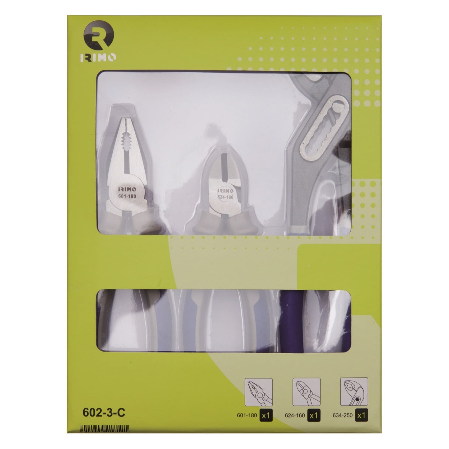 Product Description Features: High performance steel Bi-material handles Includes: Combination Pliers 180mm 601-180-1 Side Cutting Pliers 160mm 624-160-1 Slip Joint Pliers 250mm 634-250-1 Enquiry Tell…
