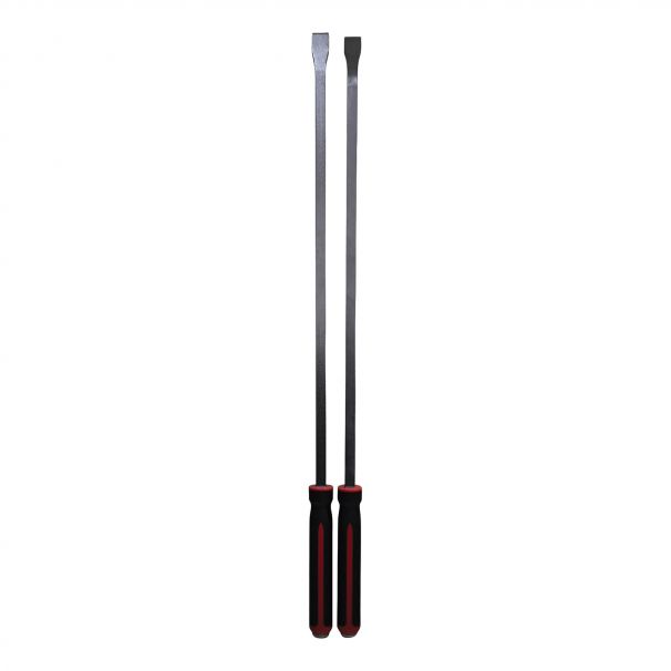 This set comprises two jumbo pry bars. Ideal for general workshop use, one pry bar has a straight tip, and the other a bent tip.Made from high quality steel, for professional use.Bent tip / Straight tip930mm overall length