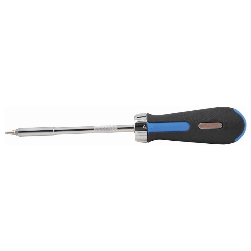 Product Description Contents: • 45 Teeth Ratcheting Screwdriver Handle (with internal bit storage) • 6 Nickel Plated 25mm Bits Phillips: No 1, No2 Blade: 4mm, 6mm Hex: 3mm, 5mm • 2 Interchangable Bit …