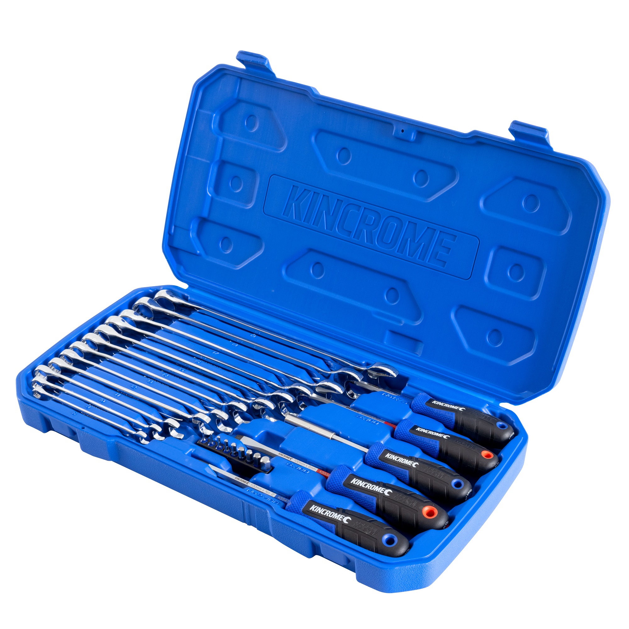 Product Description Kit Contains: 12 Metric Combination Spanners: 6 – 19mm 2 Blade Screwdrivers: 100 x 5mm, 100 x 6mm 2 Phillips Screwdrivers: 75mm x No.1, 100mm x No.2 1/4″ Bit Driver 9 Piece Hex Bit…
