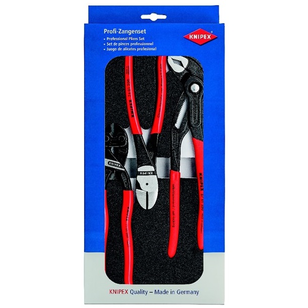 Product Description Features: Made in Germany Knipex COBRA®, COBOLT® and High Leverage Diagonal Cutter in a foam tray Suitable for all common tool trolleys and workbenches Highest quality tools with l…