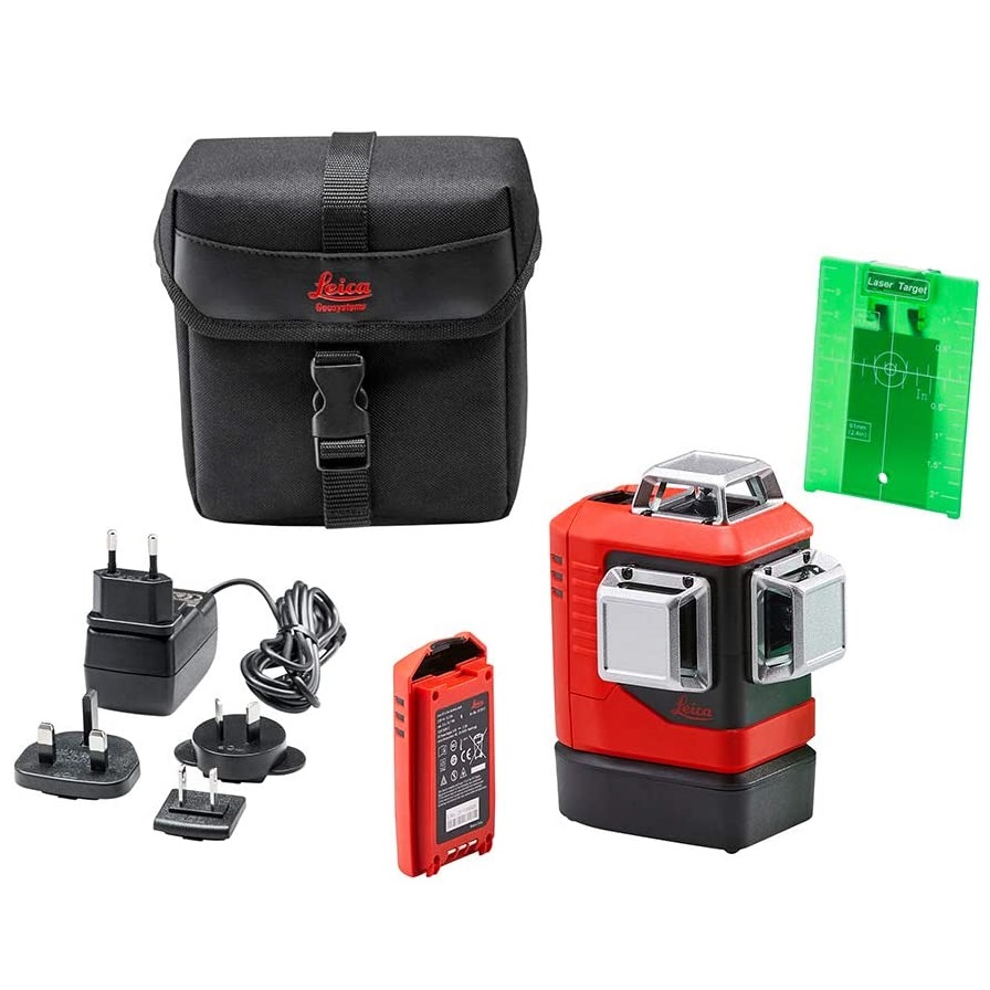Product Description Description: 360° green laser line projection for multi-directional alignment – perfect for large and bright environments. The laser’s vertical lines are easily adjusted once the plumb point (cross-section of two vertical lines), which is located outside the device, is set Features: Horizontal and two vertical 360° green laser lines Best visibility due to green Ultra-power laser diodes Self-leveling over wide range Fixed plumb point due to integrated base Adjustable strength of laser lines Operating range of up to 35 metres Li-Ion power for up to 11 h Uninterrupted working with Triple-Power concept Smart magnetic adapters versatile usage Technical Data: Beam horizontal 360° Beam vertical 2 x 360° Intersection points up, down, right, left, front, back (90° / 180°) Range / diameter* 35 m / 70 m (115 ft / 230 ft) Range / diameter* with Leica RGR 200 receiver 70 m / 140 m (230 ft / 460 ft) Levelling accuracy ± 0.2 mm/m (± 0.002 in/ft) Horizontal- and vertical line accuracy ± 0.3 mm/m (± 0.004 in/ft) Intersection point accuracy ± 0.2 mm/m (± 0.002 in/ft) Self-levelling range ± 4° Self-levelling time < 3 sec Fine adjustment ± 10° around vertical intersection point Out-of-level warning yes – blink lines every 5 s Levelling pendulum (lockable) Laser 525 nm / class 2 (acc. to IEC 60825-1) Protection class IP54 (dust and splash water) Battery type Lino Li-Ion battery pack 5200mAh / 18.7Wh or 3 x AA Alkaline Laser line intensity (selectable) 100 %, 75 %, 50 % Operating time with Li-Ion up to 11 h (3 beam, 50 % power) Operating time with Alkaline up to 8 h (3 beam, 50 % power) Dimensions 124 x 107 x 154 mm (4.88 x 4.21 x 6.06 in) Weight 781 g (1.71 lbs) Operation temperature -10 to +50° C (14 to 122° F) Storage temperature -25 to +70° C (-13 to +158° F) Laser line width @ 5 m distance (16.4 ft) < 2 mm (< 0.08 in) Tripod thread 1/4 in (5/8 in with adapter) Pulse power for receiver yes Kit Includes: Leica Lino L6G Li-Ion battery pack Charger for Li-Ion battery pack Battery tray for Alkaline Target plate Quick start guide Calibration Certificate Blue Carry Pouch UPC: 7640180530657 Enquiry Tell A Friend