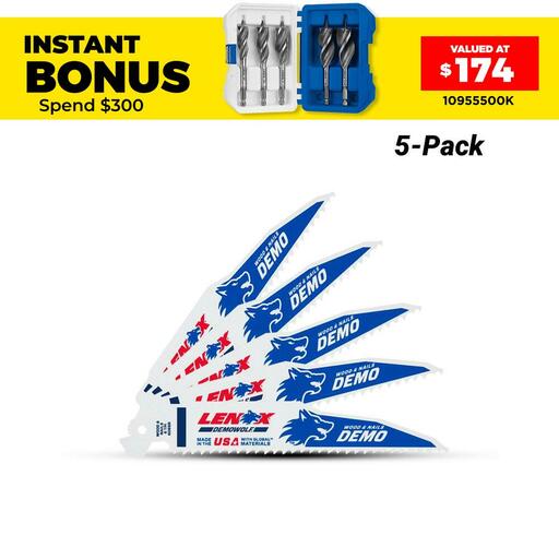 Buy Lenox 203706066R5 5-Pack 152 x 22 x 1.6mm 6TPI Demolition Bi-Metal Reciprocating Saw Blades On Sale At Fix Right Supplies. FREE Shipping Australia Wide When You Spend $99. We Have The Best Brands At The Best Prices Including Milwaukee, Makita, HiKoKi, DeWalt and More! Check Our Redemption Deals Online For The Best Tools & The Best Prices.