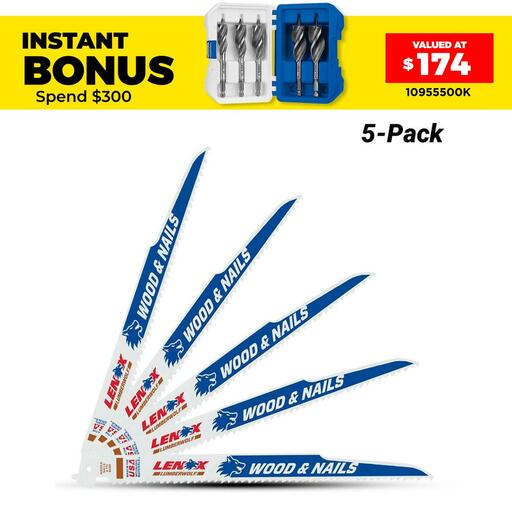 Buy Lenox 20572656R 5-Pack 152 x 19 x 1.3mm 6TPI Wood Bi-Metal Reciprocating Saw Blades On Sale At Fix Right Supplies. FREE Shipping Australia Wide When You Spend $99. We Have The Best Brands At The Best Prices Including Milwaukee, Makita, HiKoKi, DeWalt and More! Check Our Redemption Deals Online For The Best Tools & The Best Prices.