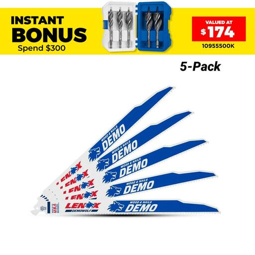 Buy Lenox 20582956R 225mm 6TPI Reciprocating Bi-Metal Wood Saw Blade – 5 Pack On Sale At Fix Right Supplies. FREE Shipping Australia Wide When You Spend $99. We Have The Best Brands At The Best Prices Including Milwaukee, Makita, HiKoKi, DeWalt and More! Check Our Redemption Deals Online For The Best Tools & The Best Prices.