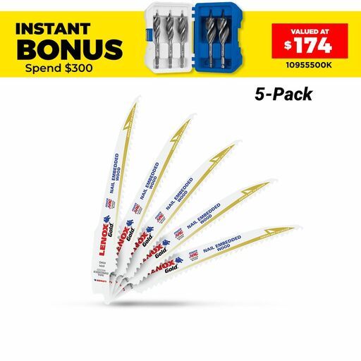 Buy Lenox 21060656GR 5pk 204 x 48 x 21mm 6″ 6TPI Gold Power Arc Reciprocating Saw Blade On Sale At Fix Right Supplies. FREE Shipping Australia Wide When You Spend $99. We Have The Best Brands At The Best Prices Including Milwaukee, Makita, HiKoKi, DeWalt and More! Check Our Redemption Deals Online For The Best Tools & The Best Prices.