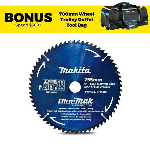 Buy Makita B-15300 255mm x 64T BLUEMAK TCT Saw Blade On Sale At Fix Right Supplies. FREE Shipping Australia Wide When You Spend $99. We Have The Best Brands At The Best Prices Including Milwaukee, Makita, HiKoKi, DeWalt and More! Check Our Redemption Deals Online For The Best Tools & The Best Prices.