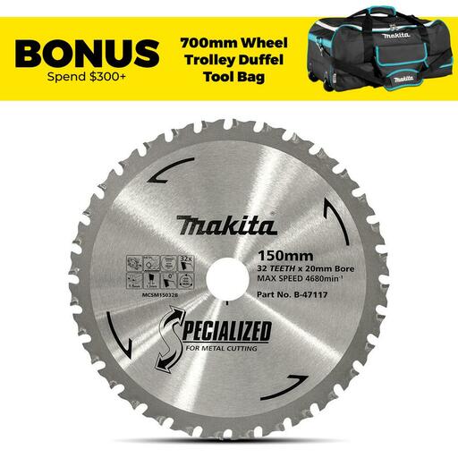 Buy Makita B-47117 150mm (6″) 32T Metal TCT Saw Blade On Sale At Fix Right Supplies. FREE Shipping Australia Wide When You Spend $99. We Have The Best Brands At The Best Prices Including Milwaukee, Makita, HiKoKi, DeWalt and More! Check Our Redemption Deals Online For The Best Tools & The Best Prices.