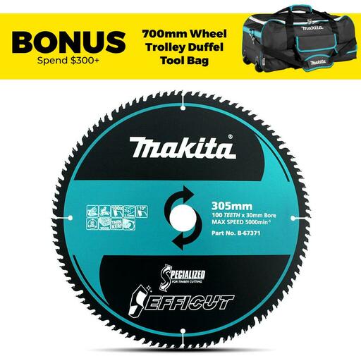 Buy Makita B-67371 305mm (12″) 100T Efficut TCT Wood Saw Blade On Sale At Fix Right Supplies. FREE Shipping Australia Wide When You Spend $99. We Have The Best Brands At The Best Prices Including Milwaukee, Makita, HiKoKi, DeWalt and More! Check Our Redemption Deals Online For The Best Tools & The Best Prices.