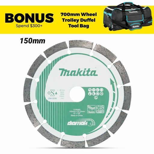 Buy Makita D-80092 150mm x 23.23mm DIAMAK Segmented Diamond Blade On Sale At Fix Right Supplies. FREE Shipping Australia Wide When You Spend $99. We Have The Best Brands At The Best Prices Including Milwaukee, Makita, HiKoKi, DeWalt and More! Check Our Redemption Deals Online For The Best Tools & The Best Prices.
