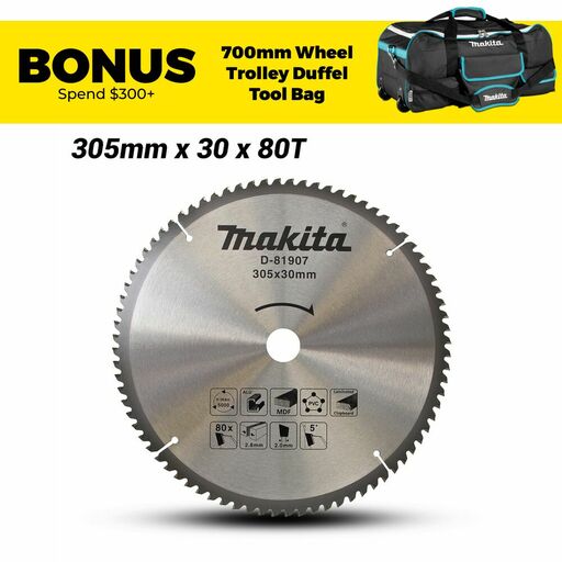 Buy Makita D-81907 305mm x 30mm x 80T MULTI CUT TCT Saw Blade On Sale At Fix Right Supplies. FREE Shipping Australia Wide When You Spend $99. We Have The Best Brands At The Best Prices Including Milwaukee, Makita, HiKoKi, DeWalt and More! Check Our Redemption Deals Online For The Best Tools & The Best Prices.
