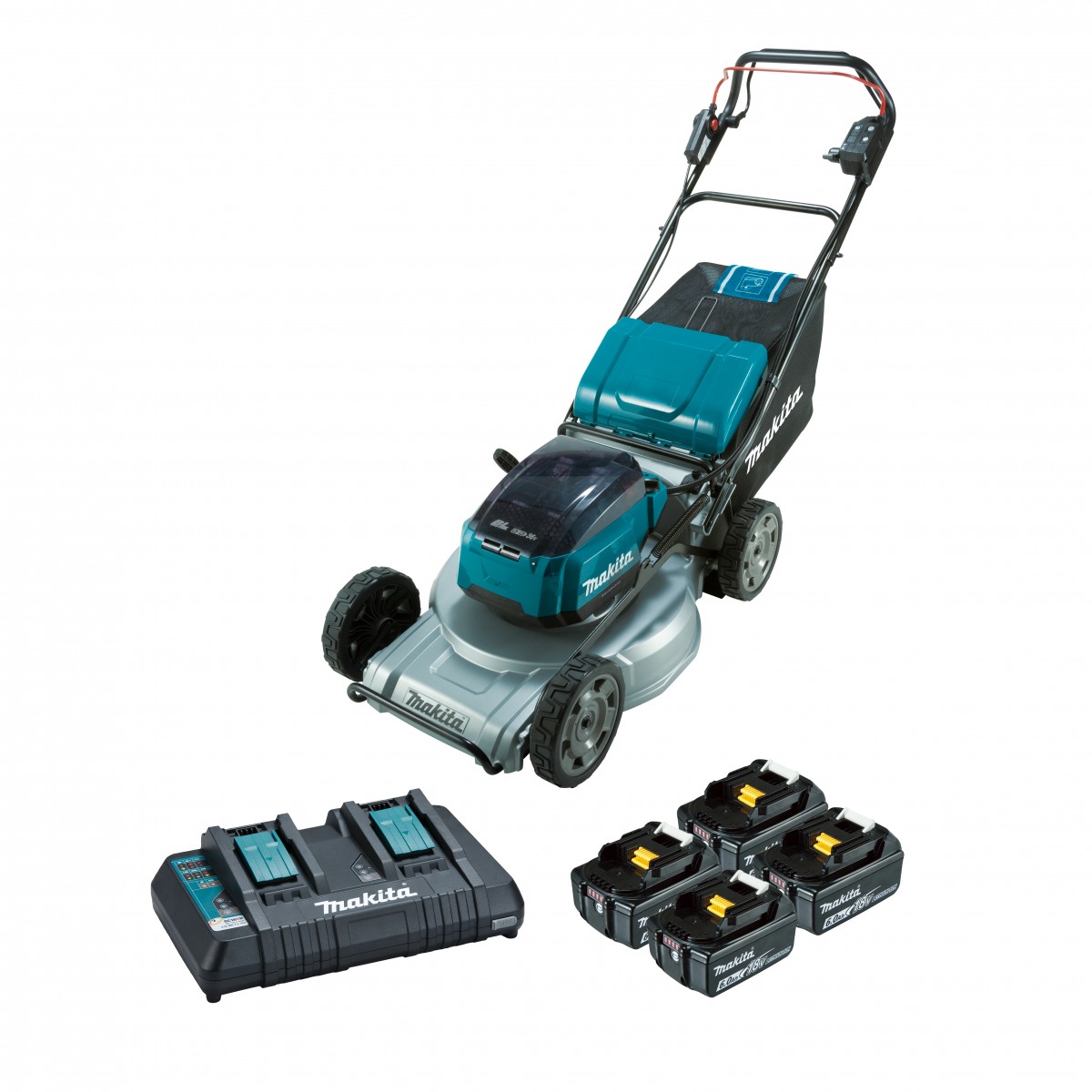 Product Description Features: Includes 4x 6.0Ah batteries & same time dual port rapid charger Quick to engage self-propelled motor with variable speed High power brushless motor provides 2,800rpm 21″ aluminium deck with 4 swing back blades Holds 4x 18V batteries with quick battery selection switch Specifications: Blade Type 4 Swing Back Blades Cutting height adjustment range 20 – 100mm, 10 heights Grass box capacity 70L Max. cutting width 534mm (21″) No Load Speed 2,800rpm Overall Length 1,635mm Recommended mowing area Self-Propelled – up to 1,700 m² Push – up to 2,000 m² *Measured using 4x 6.0Ah 18V batteries, results may vary. Skin weight 45kg Traveling speed 2.5 – 5.0km/h Voltage 36V (18Vx2) Weight (with battery) 47.4kg Standard Accessories: Rod 6 (327589-6) Socket Wrench 17 (82210-8) Socket Wrench 13 (782212-4) Safety Key (643535-4) Swing Back Blade Set (191D50-1) UPC: 0088381735568 Enquiry Tell A Friend