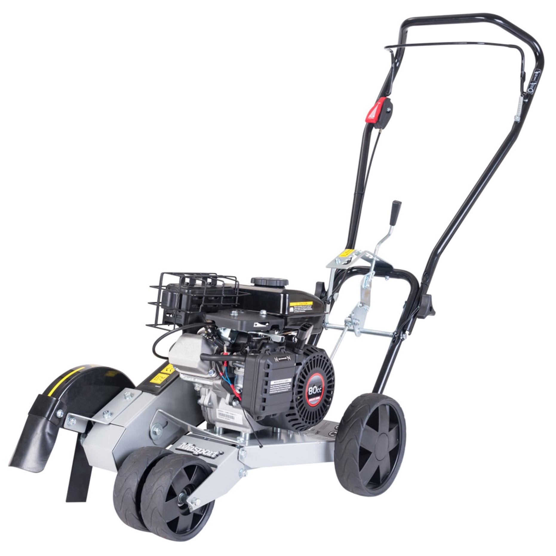 Product Description Description: With the Masport Petrol Edger you can achieve edge to edge precision and that perfect finish for a well manicured lawn. Clean up or create any edge in your garden from pathways to garden beds. With double front wheels, this compact edger is very stable, making it easy to use and allowing the operator to be more precise with their edging Features: Powered by Loncin 80cc horizontal shaft OHV engine 240mm (9.5″) Bar Blade Ten position height control and large cutting range allows for different height settings for a variety of purposes Cutting Range: 2cm above ground to 6cm below ground Fold down handles are designed for convenient storage OPC controls for added safety that contains “lockout” feature to prevent accidental operation Single lever height control system adjustable from operating position 150mm (6″) front and 200mm (8″) rear ball bearing wheels 4 Year Warranty *Engine is protected by the engine manufacturer warranty Specifications: Engine Make Loncin Engine Model LC148F-2 Engine Capacity 80cc Cutting Range 2cm above ground to 6cm below ground Height Control 10 Position Blade Material Steel Handle Type Fold down handle equipped with OPC controls Wheels 150mm (6″) front and 200mm (8″) rear ball bearing Weight 28.1kg Product Dimensions (W x H x L) 415mm x 1060mm x 1120mm UPC: 9414974509192 Enquiry Tell A Friend