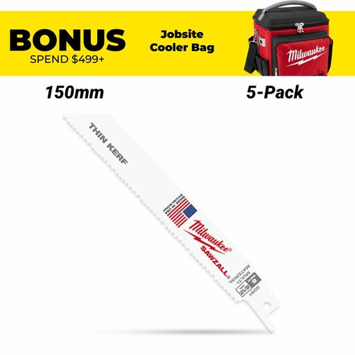 Buy Milwaukee 48005091 5-Pack 150mm 6″ 18/12TPI Thin Kerf Multi-Material SAWZALL Blades On Sale At Fix Right Supplies. FREE Shipping Australia Wide When You Spend $99. We Have The Best Brands At The Best Prices Including Milwaukee, Makita, HiKoKi, DeWalt and More! Check Our Redemption Deals Online For The Best Tools & The Best Prices.