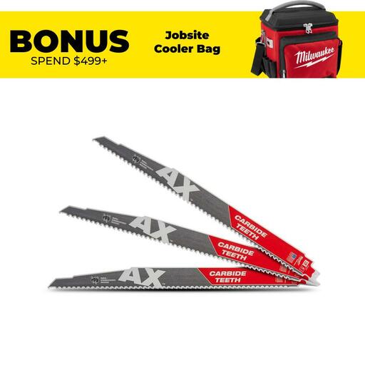 Buy Milwaukee 48005327 3-Pack The AX Carbide Teeth 300mm (12″) SAWZALL Reciprocating Saw Blades On Sale At Fix Right Supplies. FREE Shipping Australia Wide When You Spend $99. We Have The Best Brands At The Best Prices Including Milwaukee, Makita, HiKoKi, DeWalt and More! Check Our Redemption Deals Online For The Best Tools & The Best Prices.