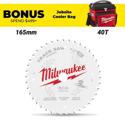 Buy Milwaukee 48400625 165mm (6-1/2″) 40T Wood Track Saw Blade Finish to suit M18FPS55 Track Saw On Sale At Fix Right Supplies. FREE Shipping Australia Wide When You Spend $99. We Have The Best Brands At The Best Prices Including Milwaukee, Makita, HiKoKi, DeWalt and More! Check Our Redemption Deals Online For The Best Tools & The Best Prices.