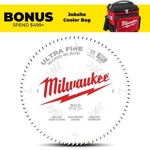 Buy Milwaukee 48408032 254mm (10″) 80-Tooth Ultra Fine Finish Wood Circular Saw Blade On Sale At Fix Right Supplies. FREE Shipping Australia Wide When You Spend $99. We Have The Best Brands At The Best Prices Including Milwaukee, Makita, HiKoKi, DeWalt and More! Check Our Redemption Deals Online For The Best Tools & The Best Prices.