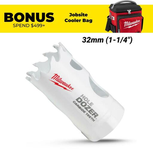 Buy Milwaukee 49560710 32mm (1-1/4″) HOLE DOZER Carbide Teeth Bi-Metal Hole Saw On Sale At Fix Right Supplies. FREE Shipping Australia Wide When You Spend $99. We Have The Best Brands At The Best Prices Including Milwaukee, Makita, HiKoKi, DeWalt and More! Check Our Redemption Deals Online For The Best Tools & The Best Prices.