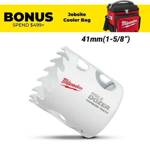 Buy Milwaukee 49560714 41mm (1-5/8″) HOLE DOZER Carbide Teeth Hole Saw On Sale At Fix Right Supplies. FREE Shipping Australia Wide When You Spend $99. We Have The Best Brands At The Best Prices Including Milwaukee, Makita, HiKoKi, DeWalt and More! Check Our Redemption Deals Online For The Best Tools & The Best Prices.