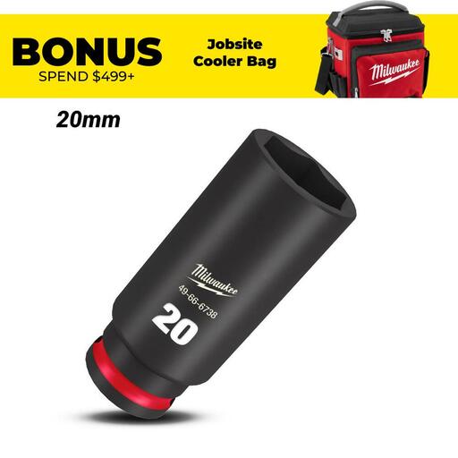 Buy Milwaukee 49666738 20mm 3/8″ Drive Shockwave Metric Deep 6 Point Impact Socket On Sale At Fix Right Supplies. FREE Shipping Australia Wide When You Spend $99. We Have The Best Brands At The Best Prices Including Milwaukee, Makita, HiKoKi, DeWalt and More! Check Our Redemption Deals Online For The Best Tools & The Best Prices.
