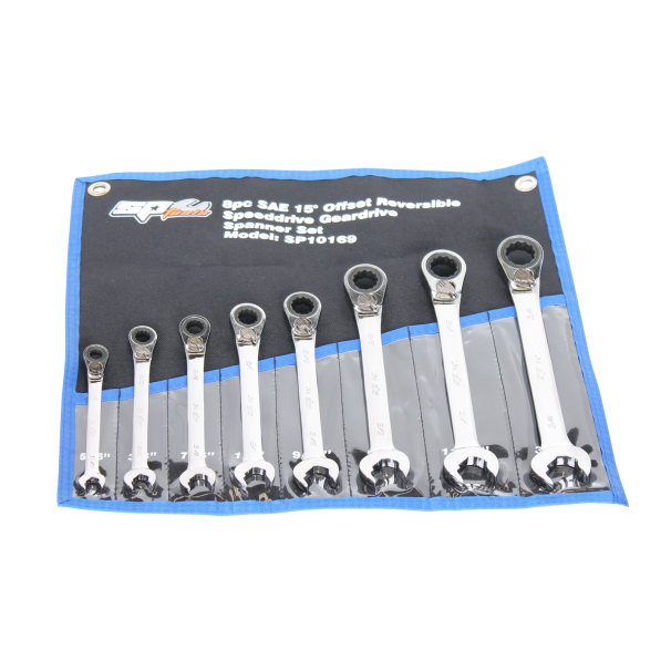 15º Reversible Speeddrive Combination Geardrive Spanner Set8pc SAE 5/16 – 3/4”Geardrive on Ring EndSpeed Drive on Open End