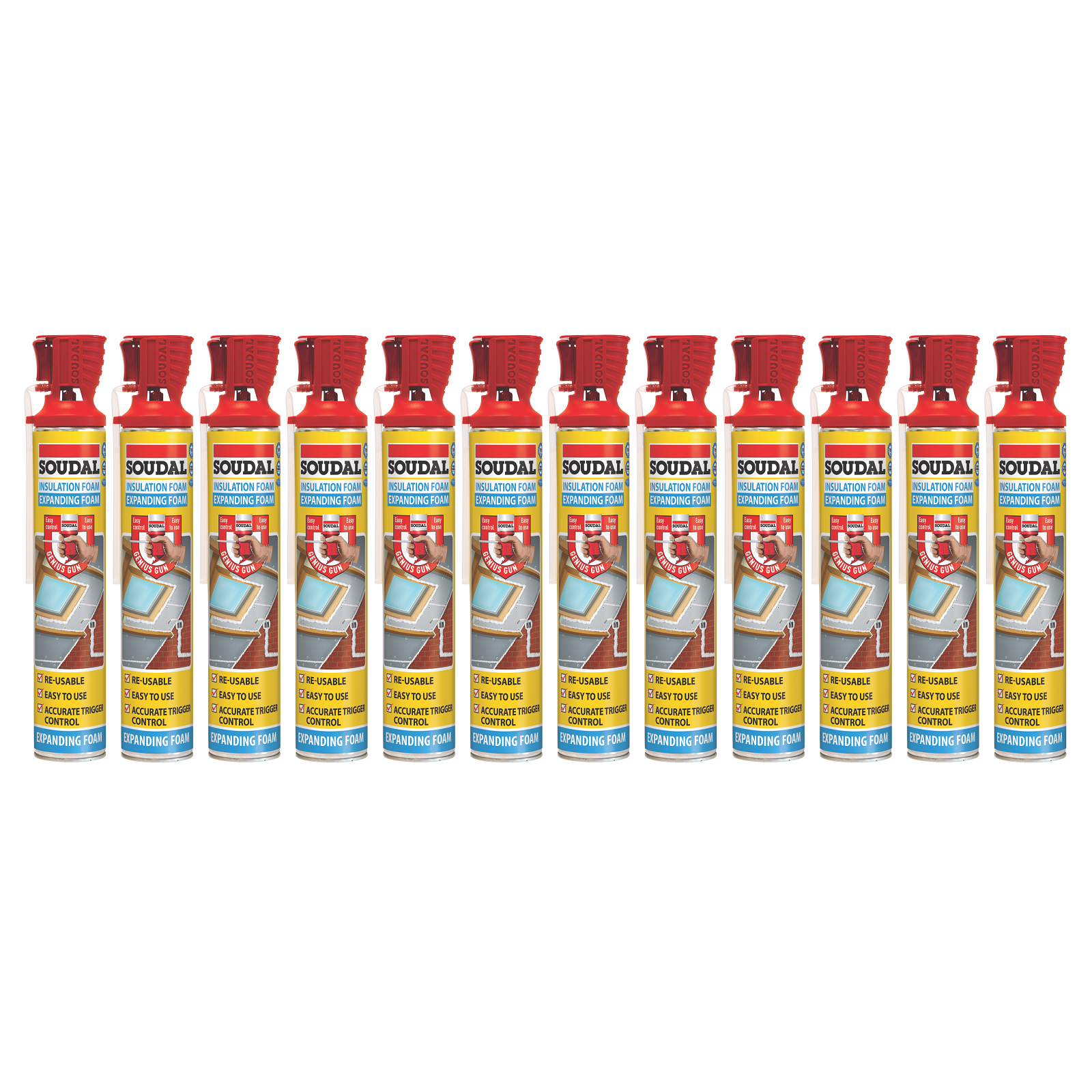 Product Description Description: A flexible polyurethane based expanding foam with a specially designed patented trigger mechanism ensuring precise dosage and removing the need for an additional gun. The foam cures to become fully flexible, making it the ideal insulating gap filler as it is capable to absorb the movement of the substrates without cracking. It is easy to use, can be operated with one hand and is re-usable up to 6 weeks later. Genius Gun Flexible Insulation Expanding Foam is an excellent thermal and acoustic insulator which bonds to practically all building materials such as brick, concrete, PVC, timber, insulation materials, pipes, cables, ducts, metals and many other plastics (except PP, PE, PTFE and silicones) Expands to approximately 30 times the size of the can, moisture curing, water resistant, excellent thermal insulator (better than many other insulation materials), absorbs sound, extremely light weight once cured, fully flexible. The typical blue colour distinguishes the product from other types of PU Foams Features: Excellent Insulation Remains flexible to absorb building movement Re-usable for 6 weeks One handed operation Trigger control Applications: Insulation and filling of expansion joints, filling of joints between wall panels, filling of openings between window frames and the surrounding constructions, filling of wall cavities, holes, pipe penetrations. Perfect for improving thermal and acoustic insulation and for eliminating thermal bridges or draft. Does not affect building materials including cables and insulation panels. Can be cut, sanded, plastered or covered with a sealant once fully cured. Cover in order to protect from UV for longer life. Internal and external use Contains: 12x Soudal Genius Gun Gap Filling Expanding Insulation Foam Blue 750ml UPC: 5411183135031 Enquiry Tell A Friend