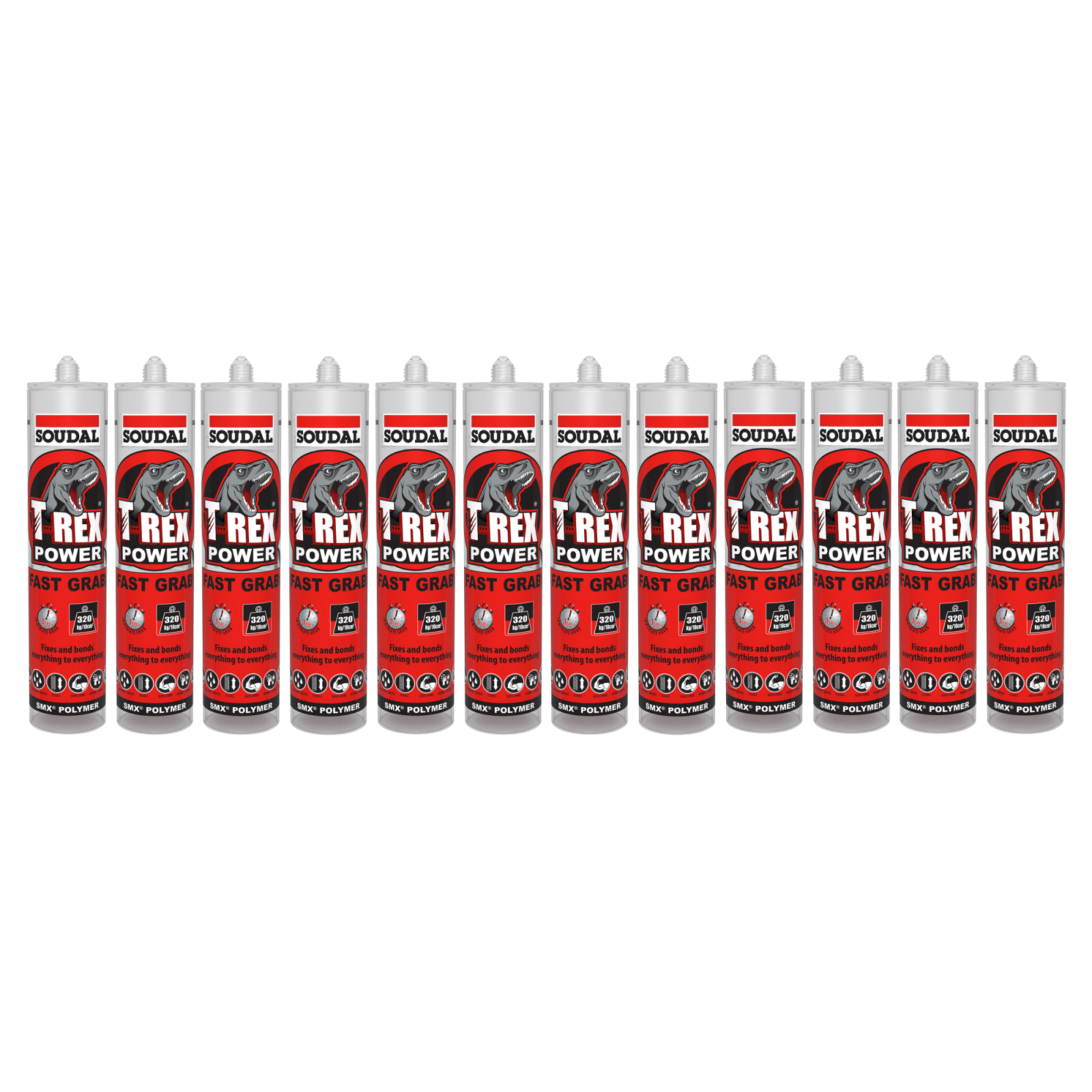 HomeShopAccessoriesSealants & AdhesivesSoudal 134912 T-Rex Power Fast Grab 290ml SMX® Polymer Sealant Adhesive Clear One Box (12 Pack) 153387×12