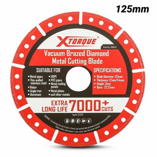 Buy Xtorque XVBM125 125mm x 22.23mm x 1.2mm Vacuum Brazed Diamond Metal Cutting Blade On Sale At Fix Right Supplies. FREE Shipping Australia Wide When You Spend $99. We Have The Best Brands At The Best Prices Including Milwaukee, Makita, HiKoKi, DeWalt and More! Check Our Redemption Deals Online For The Best Tools & The Best Prices.