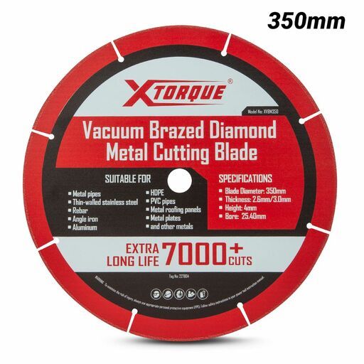 Buy Xtorque XVBM350 350mm x 25.4mm x 2.2mm Vacuum Brazed Diamond Metal Cutting Blade On Sale At Fix Right Supplies. FREE Shipping Australia Wide When You Spend $99. We Have The Best Brands At The Best Prices Including Milwaukee, Makita, HiKoKi, DeWalt and More! Check Our Redemption Deals Online For The Best Tools & The Best Prices.